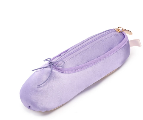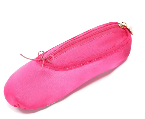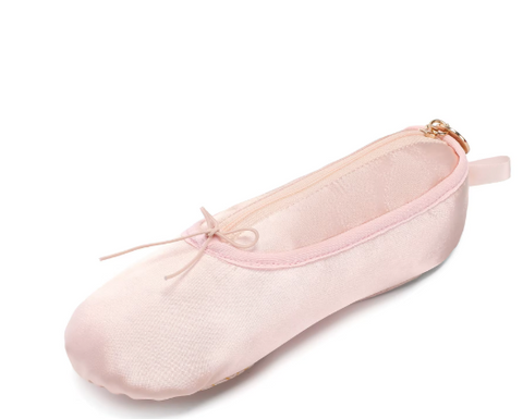 A beautiful satin real life ballet shoe with a zip insert to be used as a cosmetic or pencil hold all.