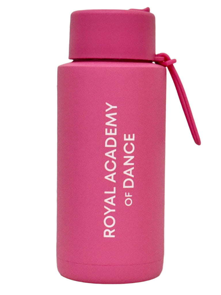 A new 1000ml double wall, eco friendly, stainless steel thermally insulated drink bottle with screw lid, straw and handle for carrying. Printed with RAD Logo in white.